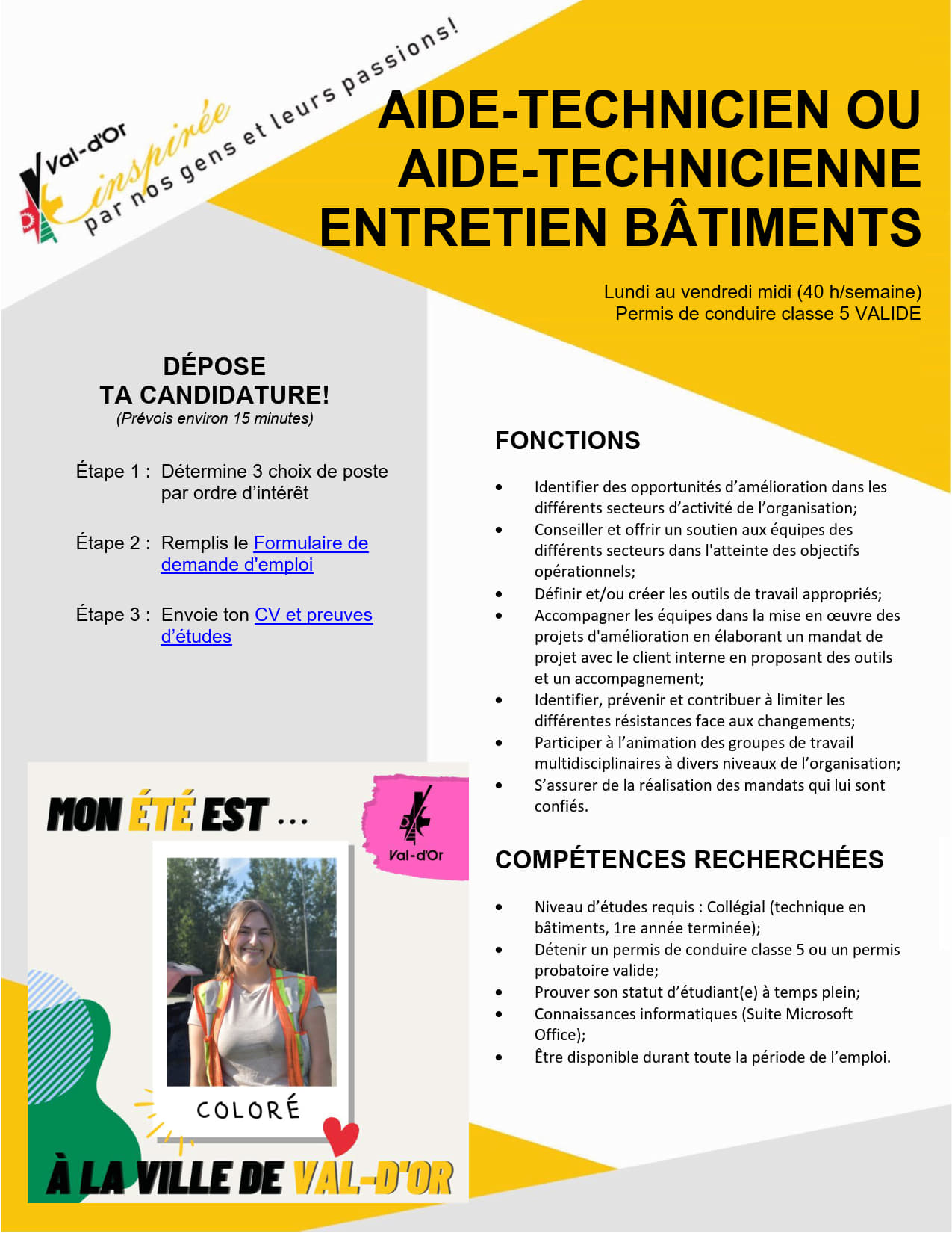 Une fois votre candidature soumise sur notre site, vous recevrez, dans un délai de cinq (5) jours ouvrables, un courriel de Manitou contenant le Formulaire de demande d'emploi estival.