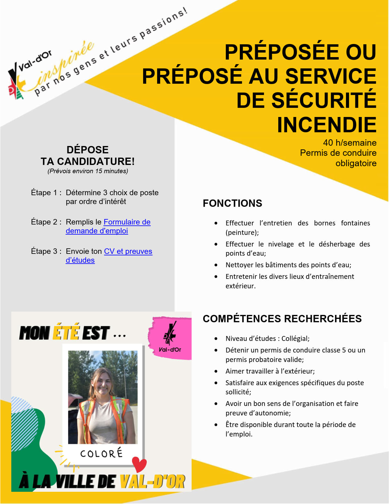 Une fois votre candidature soumise sur notre site, vous recevrez, dans un délai de cinq (5) jours ouvrables, un courriel de Manitou contenant le Formulaire de demande d'emploi estival.