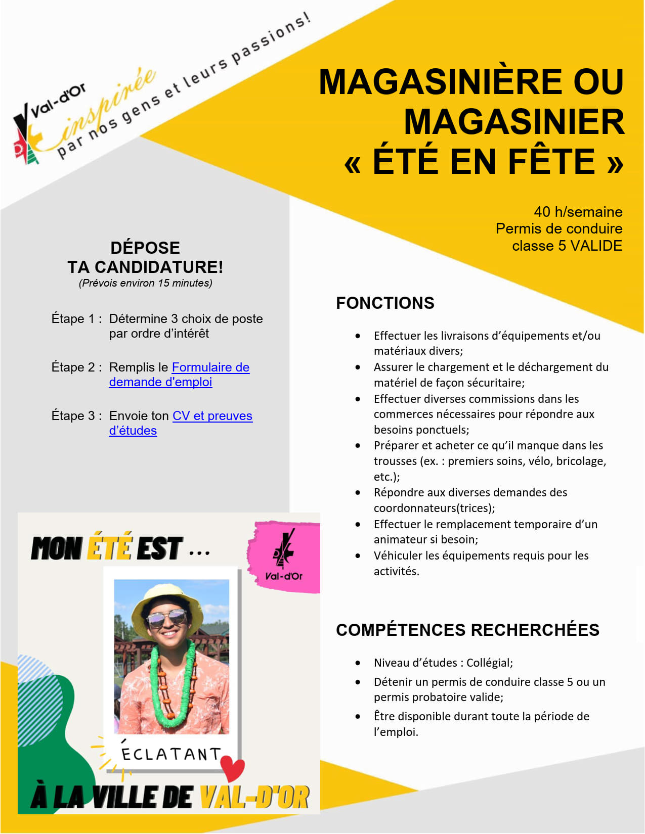 Une fois votre candidature soumise sur notre site, vous recevrez, dans un délai de cinq (5) jours ouvrables, un courriel de Manitou contenant le Formulaire de demande d'emploi estival.